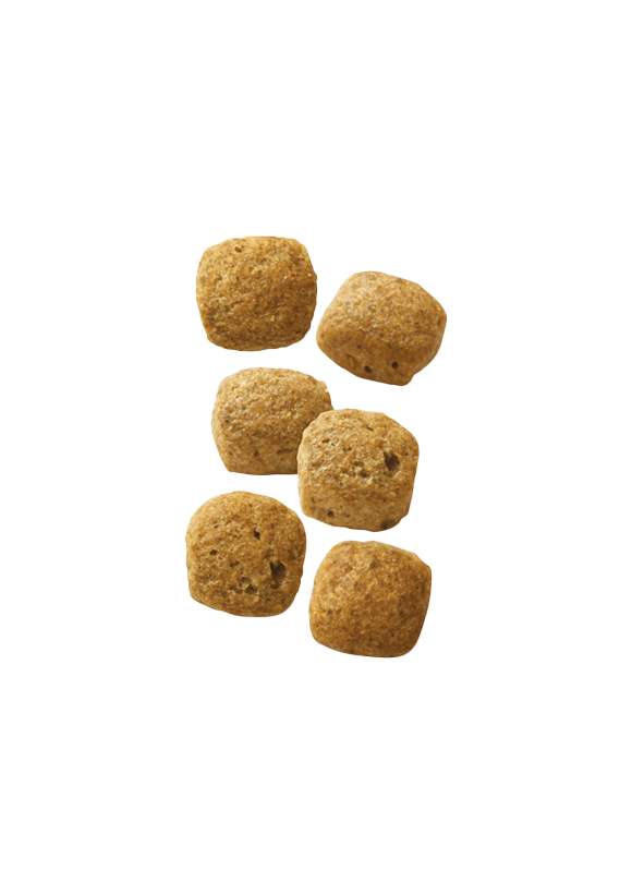消化器の健康維持に配慮して高消化性に設計。さらにプレバイオティクスを含む複数の食物繊維をバランスよく配合。