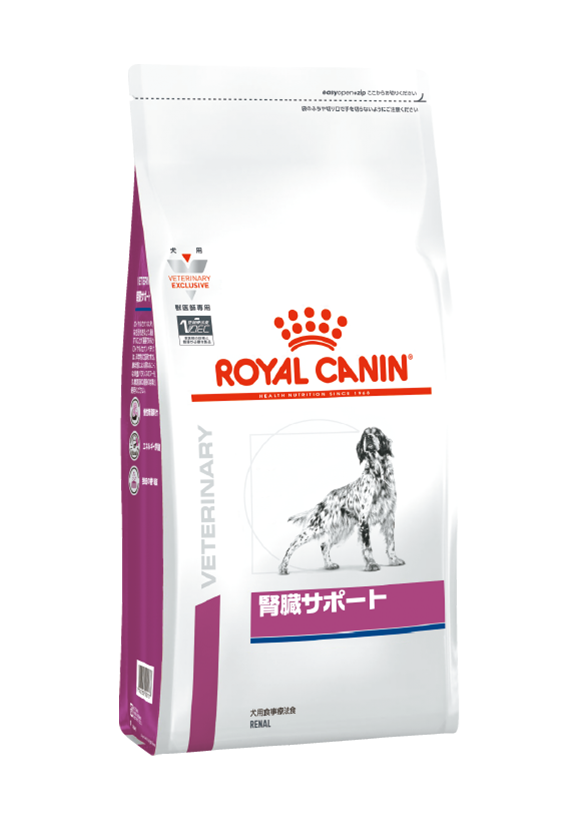 犬用 腎臓サポートは、慢性腎臓病の犬に給与する目的で特別に調製された食事療法食です。この食事は、リンの含有量を制限し、タンパク質や必須脂肪酸の含有量を調整して配合しています。また、犬が好む香りで食欲を刺激し、腎臓病による食欲低下に配慮しています。