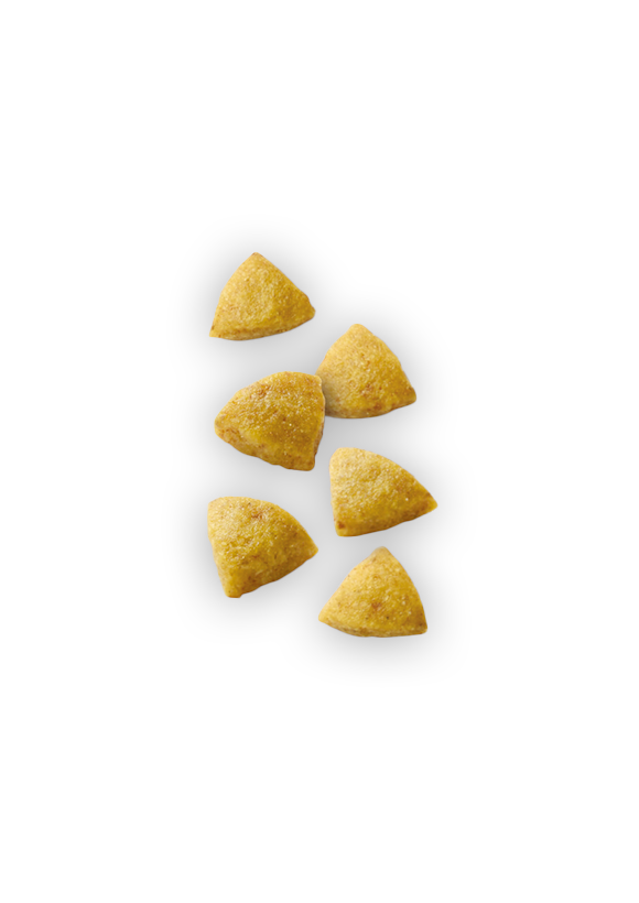 健康的な腸内細菌バランスと腸管内輸送を維持するために、可溶性食物繊維(フラクトオリゴ糖)および不溶性食物繊維を配合。