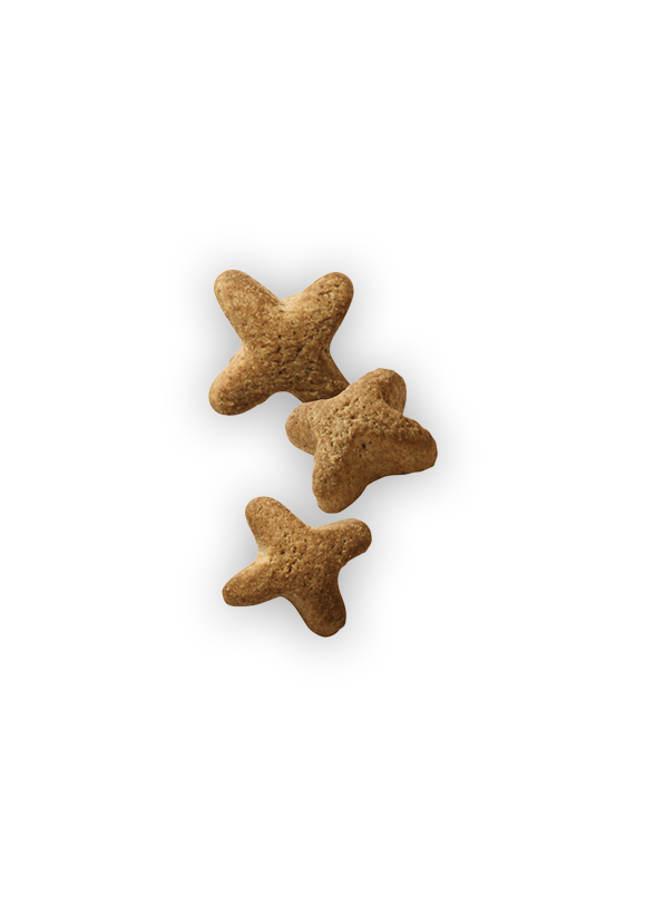 高食物繊維(28%)*で食間の満腹感を保ち、減量中のおねだり頻度を軽減。*標準的な自社成犬用フードと比較し、約328%増。