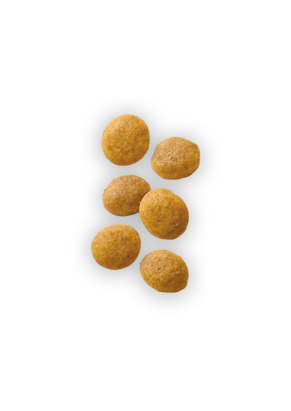 米、動物性油脂、コーン、超高消化性小麦タンパク(消化率90%以上)、コーングルテン、植物性繊維、加水分解タンパク(鶏、七面鳥、魚)、超高消化性加水分解大豆タンパク(消化率90%以上)、チコリー、大豆油、魚油(オメガ3系不飽和脂肪酸〔EPA+DHA〕源)、フラクトオリゴ糖、藻類油(EPA+DHA源)、加水分解酵母(マンナンオリゴ糖源)、マリーゴールド(ルテイン源)、アミノ酸類(L-アルギニン、DL-メチオニン、L-リジン、タウリン、L-カルニチン)、ゼオライト、ミネラル類(K、Cl、Ca、P、Zn、Fe、Na、Mn、Se、Cu、I)、ビタミン類(コリン、E、C、ナイアシン、ビオチン、B2、パントテン酸カルシウム、A、B1、B6、B12、葉酸、D3、K3)、酸化防止剤(ミックストコフェロール、ローズマリーエキス)