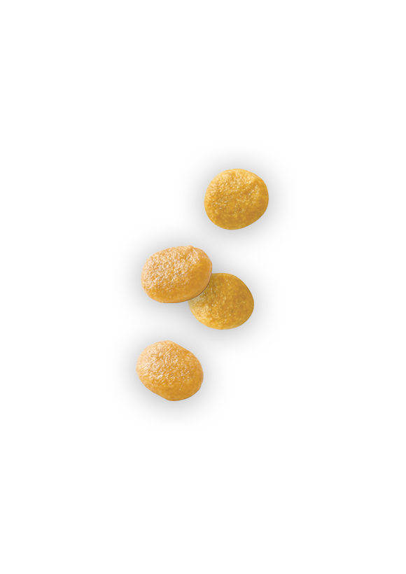 米、コーンフラワー、肉類(鶏、七面鳥、ダック)、動物性油脂、加水分解タンパク(鶏、七面鳥)、超高消化性小麦タンパク(消化率90%以上)、植物性繊維、コーングルテン、大豆油、魚油、フラクトオリゴ糖、マリーゴールドエキス(ルテイン源)、小麦粉、アミノ酸類(DL-メチオニン、L-リジン、タウリン)、ポリリン酸ナトリウム、ミネラル類(Cl、Na、K、Ca、P、Zn、Mn、Fe、Cu、Se、I)、ビタミン類(コリン、E、A、B12、B1、ビオチン、B6、B2、葉酸、パントテン酸カルシウム、D3、ナイアシン)、保存料(ソルビン酸カリウム)、酸化防止剤(ミックストコフェロール、ローズマリーエキス)