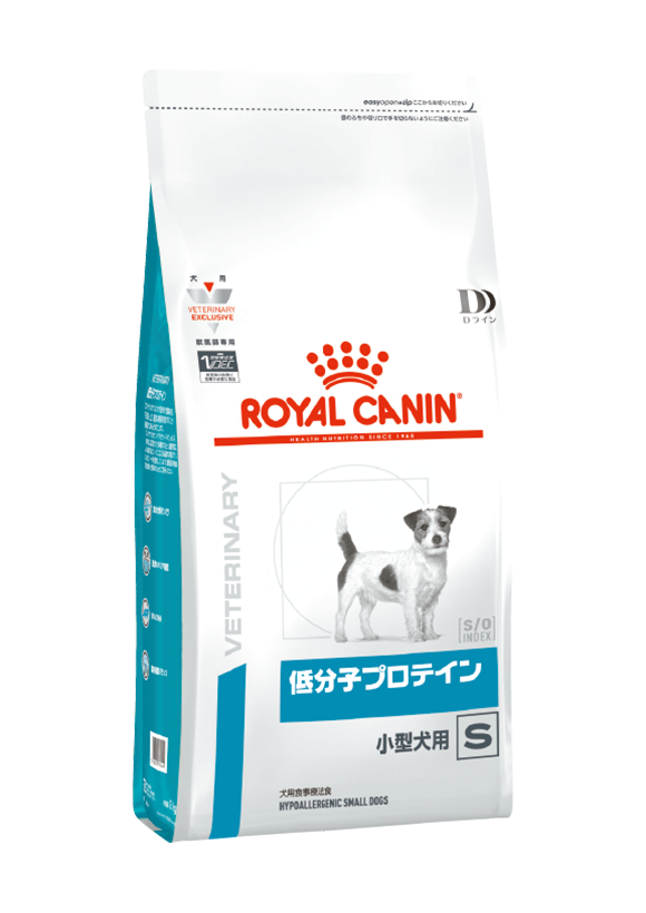 犬用 低分子プロテイン 小型犬用は、食物アレルギーによる皮膚症状および消化器症状を呈する小型犬に給与することを目的として、特別に調製された食事療法食です。この食事は、食物アレルギーの原因となりにくい加水分解したタンパク源を使用しています。