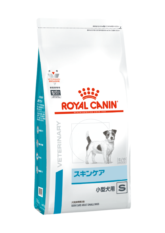犬用 スキンケア 小型犬用は、皮膚の炎症や脱毛などの症状を呈する皮膚疾患の小型犬に給与することを目的として、特別に調製された食事療法食です。この食事は、必須脂肪酸を増強しています。